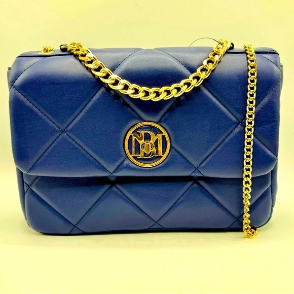 Badgley Mischka Quilting Crossbody Bag with Chain Handle and Crossbody Strap NWT This stylish blue quilted bag features a luxurious gold chain, perfect for any occasion. The elegant design and rich color make it a must-have accessory.
