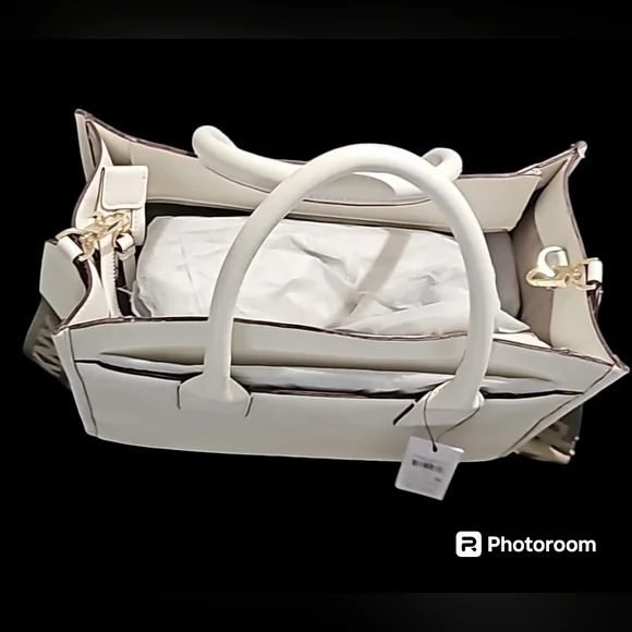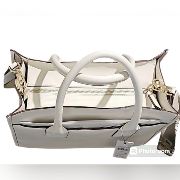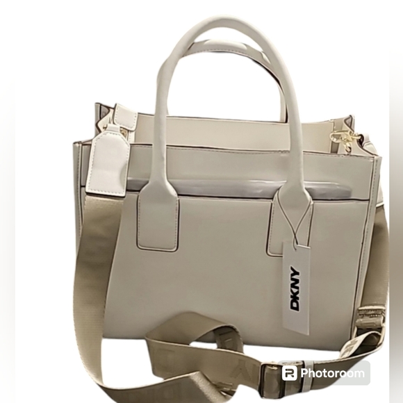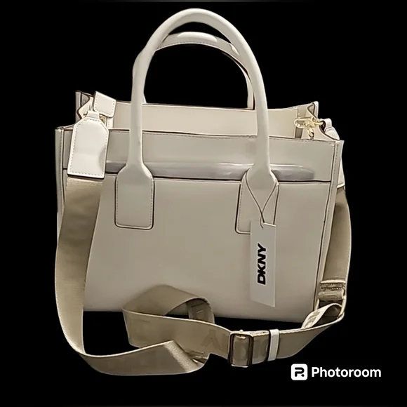 DKNY HENLEY MD TOTE Interior details : 8 card slots1 zip pocket exterior details : zippered closureslip pocket on both sides of bagdetachable /adjustable crossbody strap13 inches wide10 1/2 inch depth