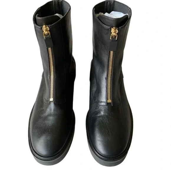 New without box*Zipper is designed to not fully extend. Please see last photo Stuart Weitzman Women´s Size 8.5Black Lodge Zip Leather BootElasticized panelingZipper...