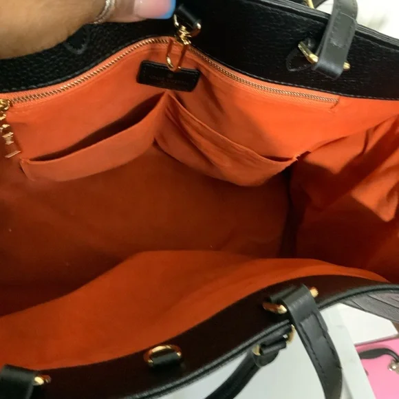 Experience timeless elegance with the Black Vegan Leather. The tote is in very good condition with minor scrapes on the outer edges of the bag. The spacious bag features a...