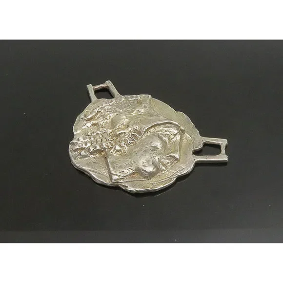 925 Sterling Silver Vintage Heavy Large Sculpted Face Profile Pendant PT19016