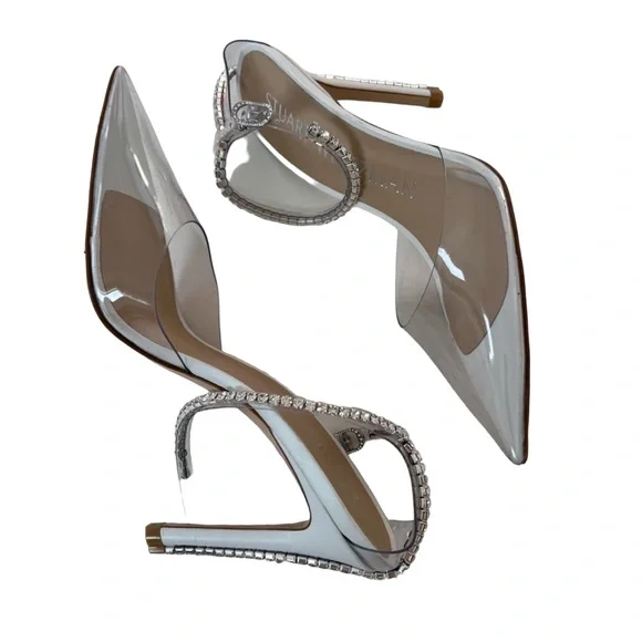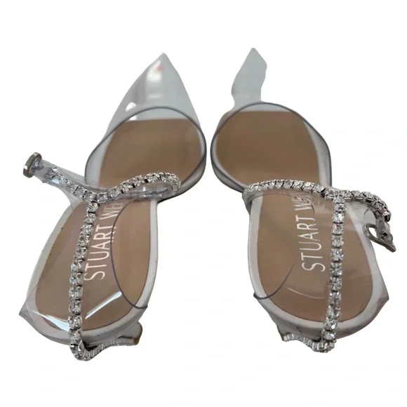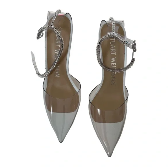NewShoes Only Store fittings/Handling Condition*please refer to photos Stuart Weitzman Glam 100 Strap PumpSize IT/EU 36 and US 6Rows of twinkling crystals glam up this special-occasion pump crafted with a clear ankle strap and lofty stiletto heel.3 3/4 heelSynthetic upper/synthetic and leather lining and soleMade in Spain