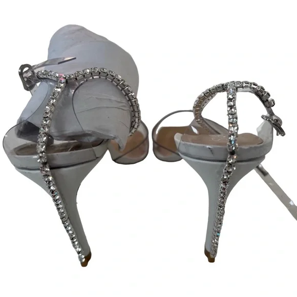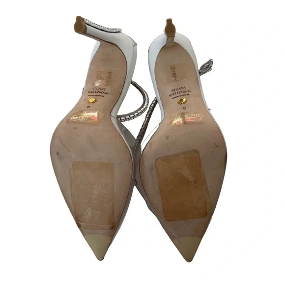 Stuart Weitzman Glam 100 Ankle Strap Rhinestone Pump in Clear/White Women’s SZ 6