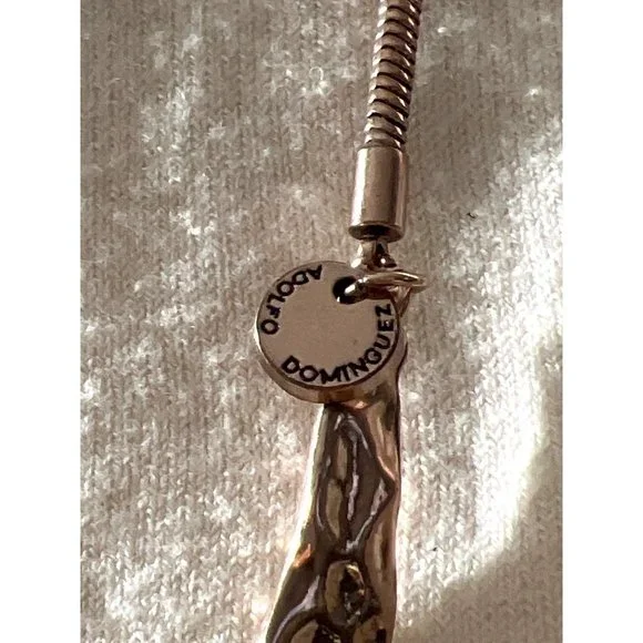 This beautiful organic style necklace is from the Spanish fashion jewelry designer, Adolfo Dominguez. Necklace is in rose gold-tone hammered metal with champagne tone fashion...