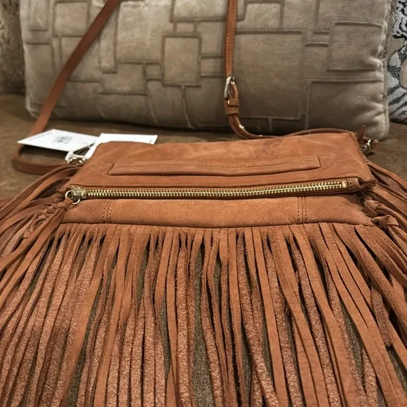Sorial tan, suede fringe Crossbody or clutch brand new