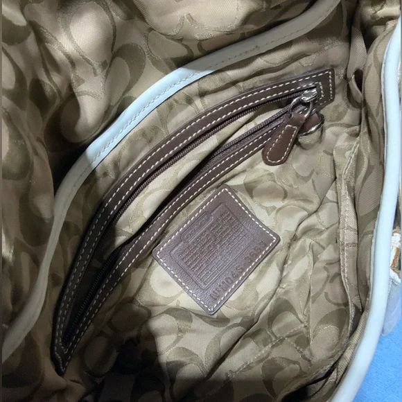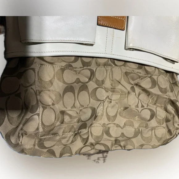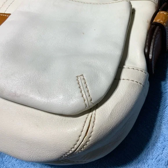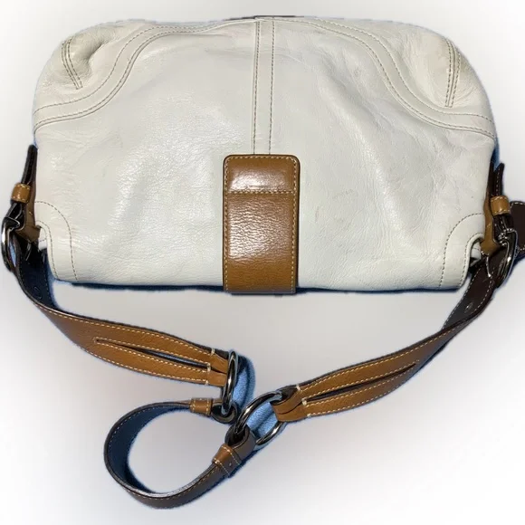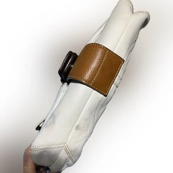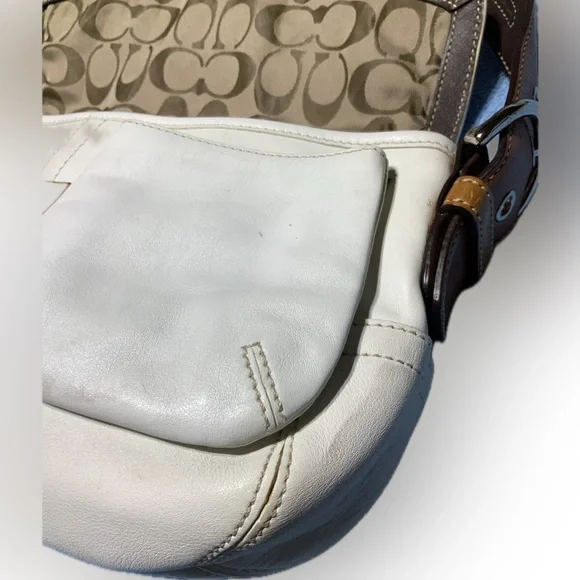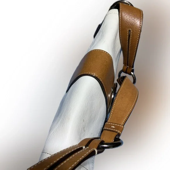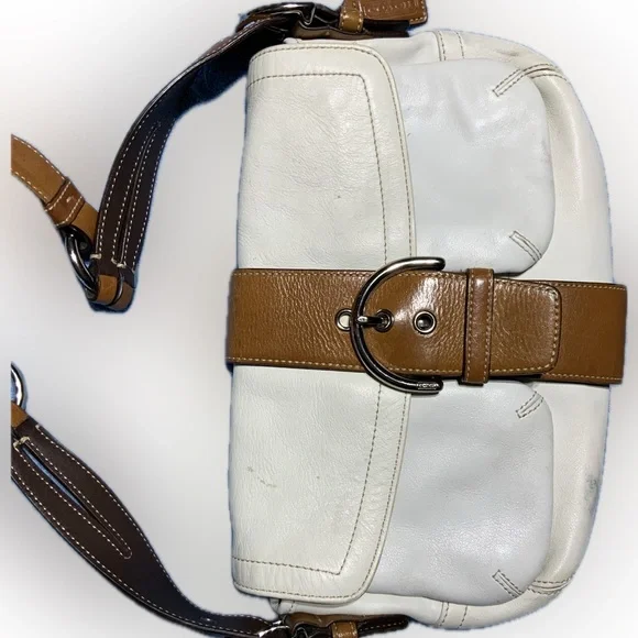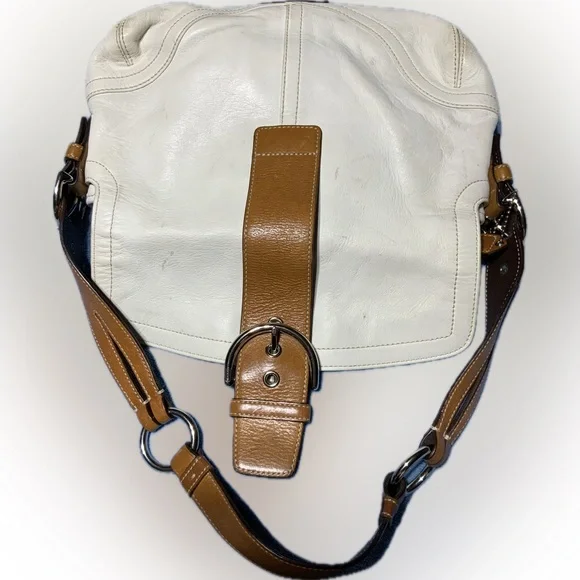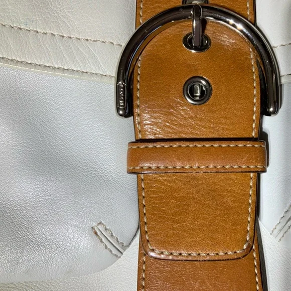 Coach Leather Buckle Soho Hampton Hobo Shoulder Handbag Two Tone White