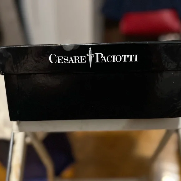 Authentic Cesare Paciotti Fall/Winter Black satin and patent leather strappy pumps Monogrammed back zipper closure Size 38, like US 7 Worn 1x in almost perfect condition Slight blemish on front of one shoe and back of same shoe (pictured) Patent leather toe and satin straps and heel In original box with original dust bag 5.5 Inch Heel and .75 Inch platform Top rated seller!