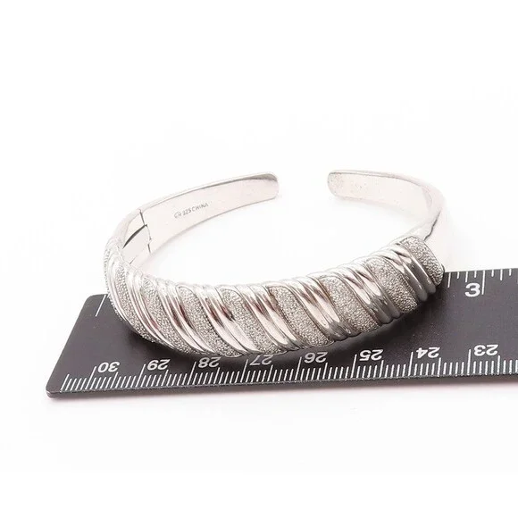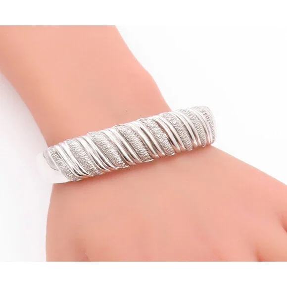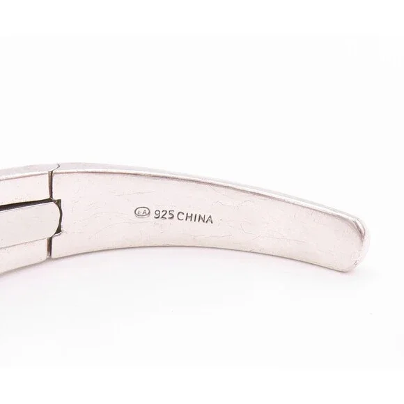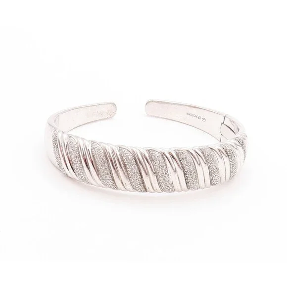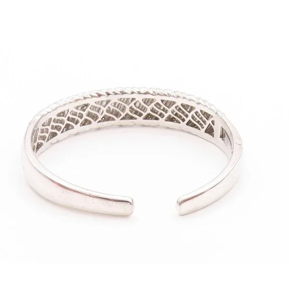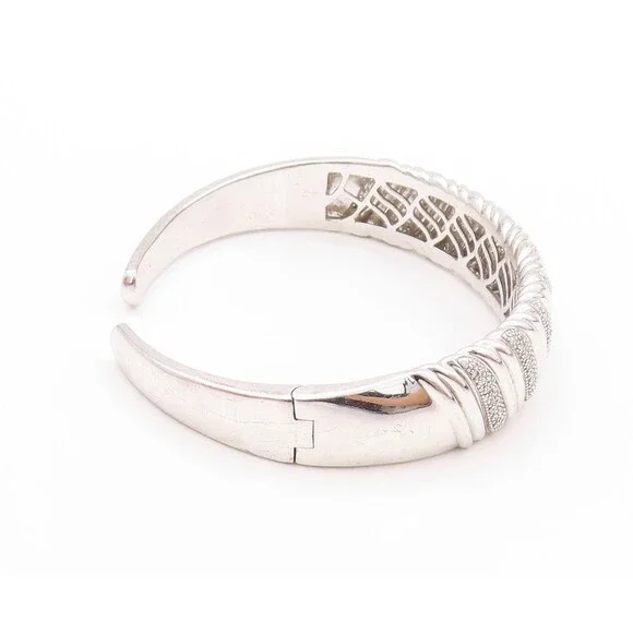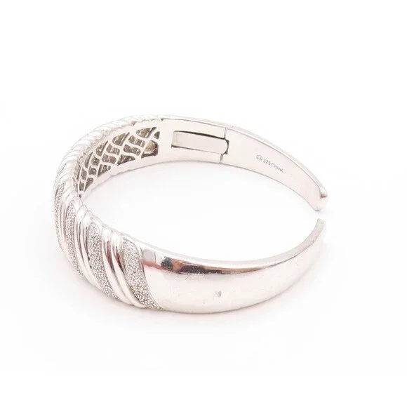 925 Sterling Silver Vintage Bracelet Swirls Etched Diamonds Inlay Cuff BT11197