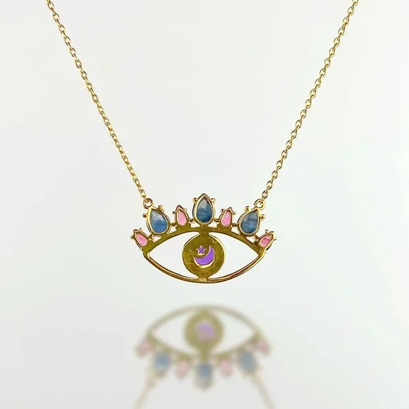 Amethyst, Blue Sapphire, Pink Tourmaline 14k Gold VermeilEvil Eye Necklace