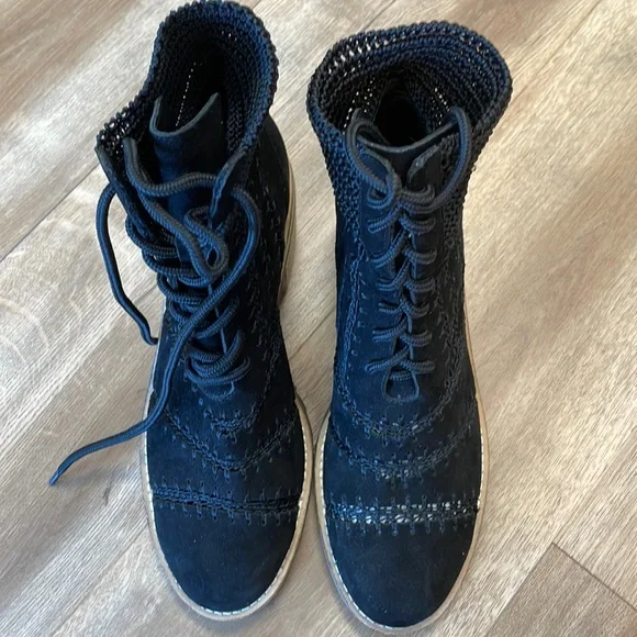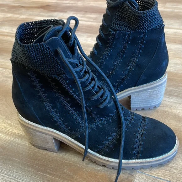 New, no box, no tag Size: 9US, 40EUReach for retro-chic perfection with this ankle bootie crafted with crochet-joined suede patchwork panels and a loopy knit cuff for delicate vintage flair.2 1/4" heel; 1/2" platform5 1/2" shaftLeather and textile upper/synthetic lining and sole.
