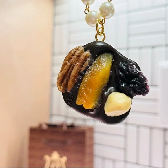 Q-pot. Japan Jewelry Nuts & Raisin Chocolate Necklace (RARE)