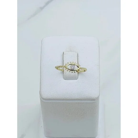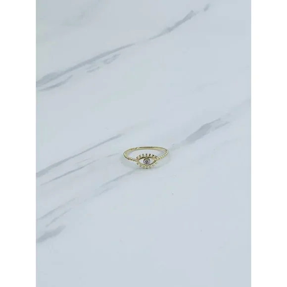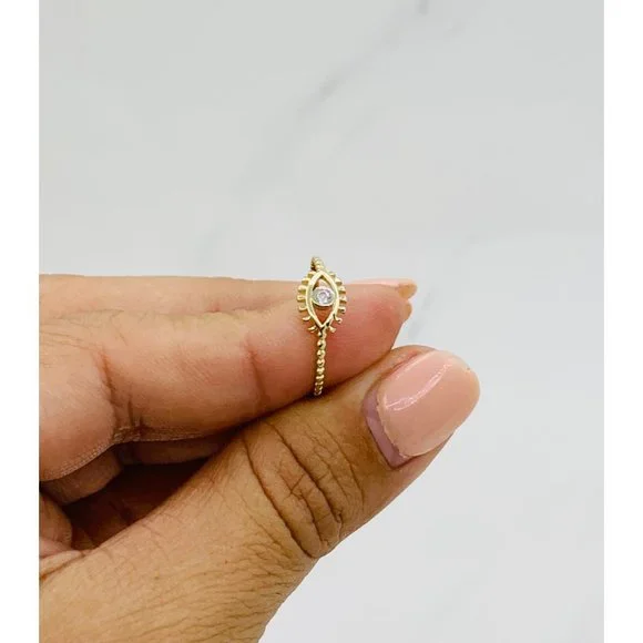 10k solid gold ring Greek eye minimalist evil eye stackable❤️ Ring Size 7❤️ Small eye with cubic zirconia ❤️ Women’s / Girl Ring Check out my other jewelry ************❤️ Anillo en Oro sólido de 10 kilates ❤️ Mujer o niña ❤️ Anillo de Tamaño 7❤️ Anillo de ojo griego pequeño con piedra zirconia blanca SKU 09563