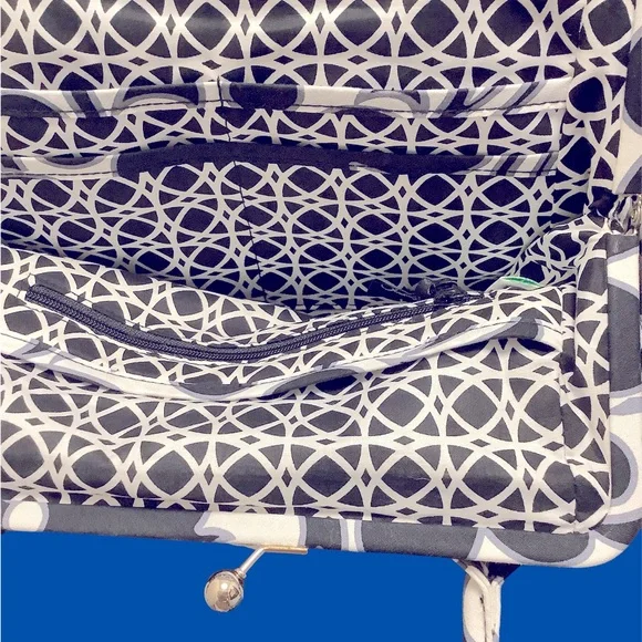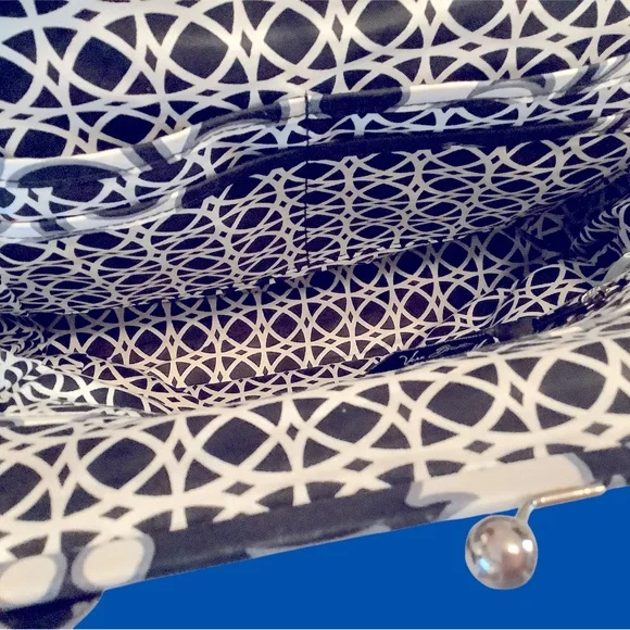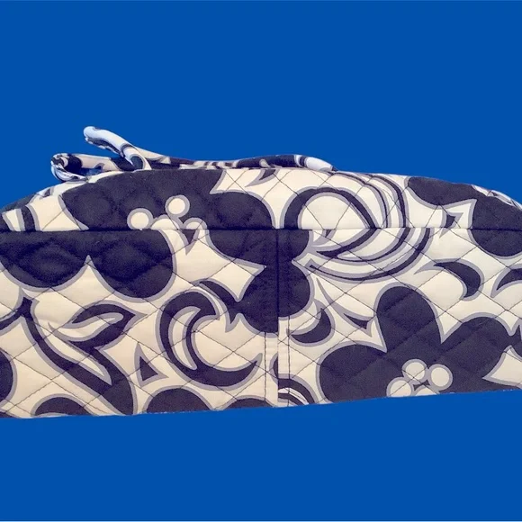 Vera Bradley Black & White flower quilted shoulder bag. Lightweight with metal clasp closure. Has 6 slip pockets and zipper pocket inside. One outside slip pocket.Bottom measures...
