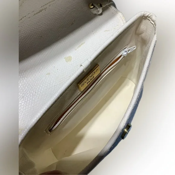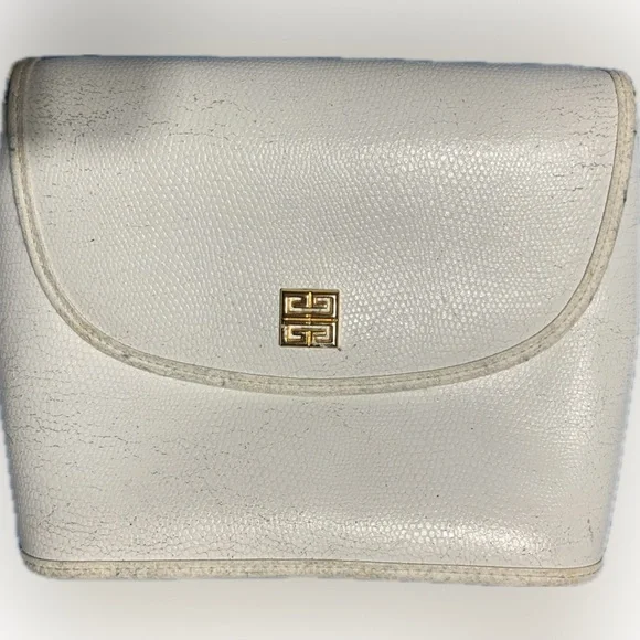 Givenchy Vintage Reptile Embossed Leather Flap Snap Crossbody 80s Retro Small