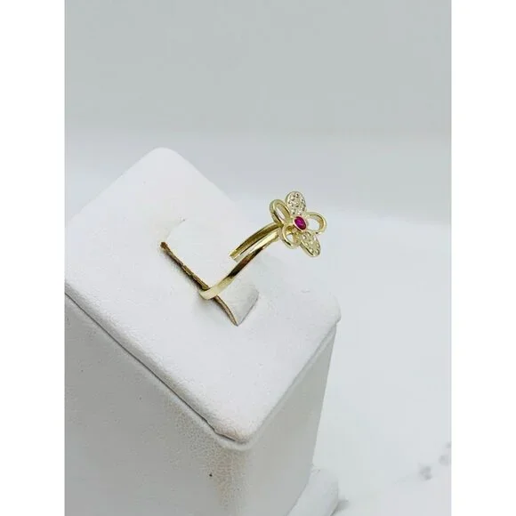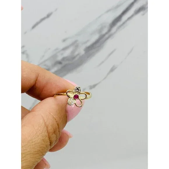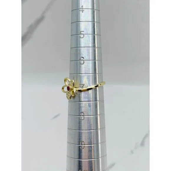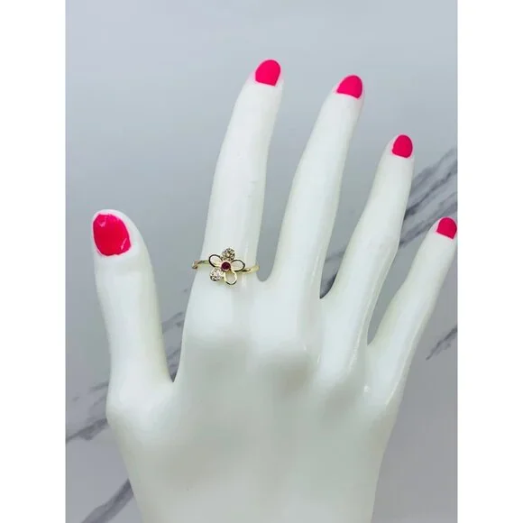 10k solid gold ring flower minimalist ❤️ Ring Size 7 ❤️ Small flower red