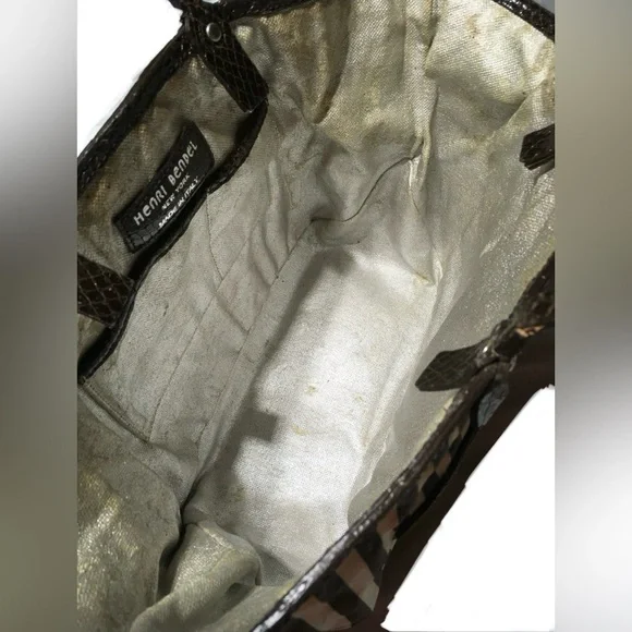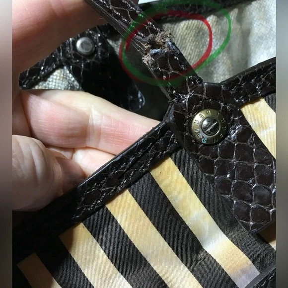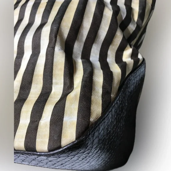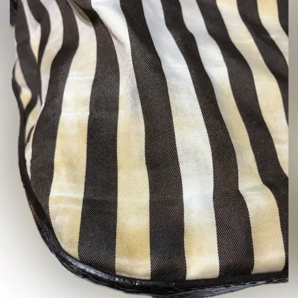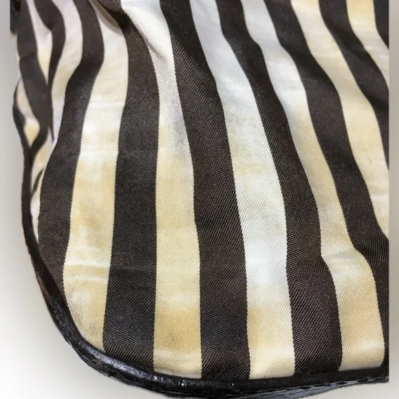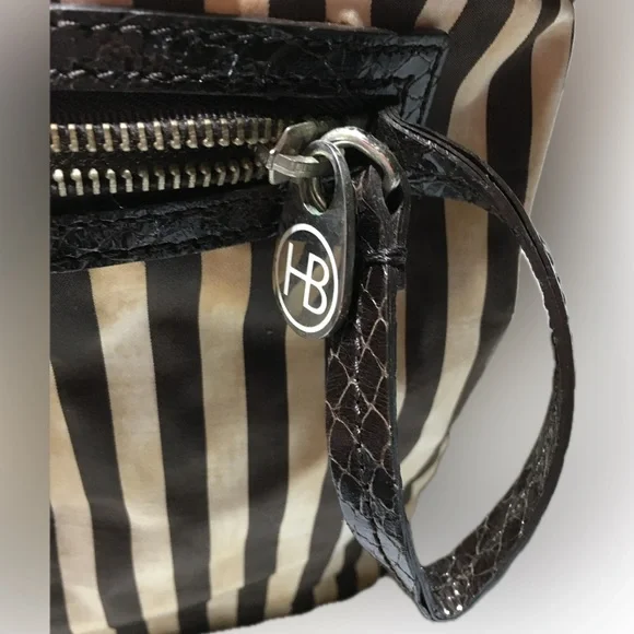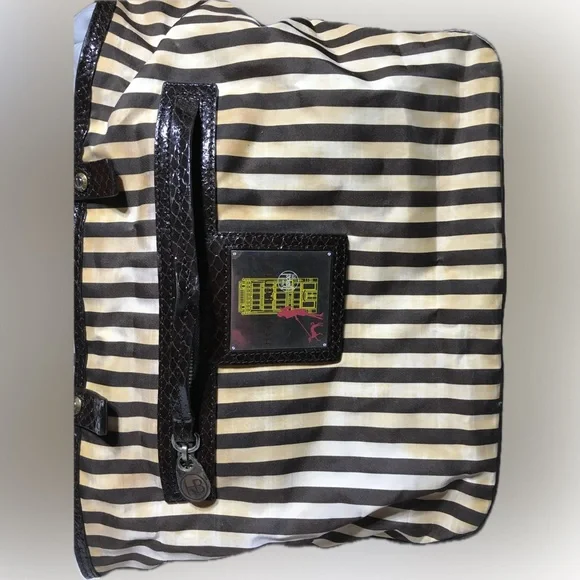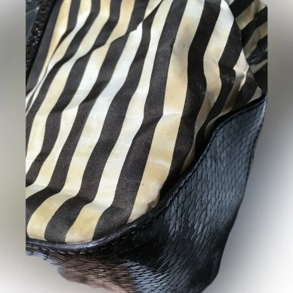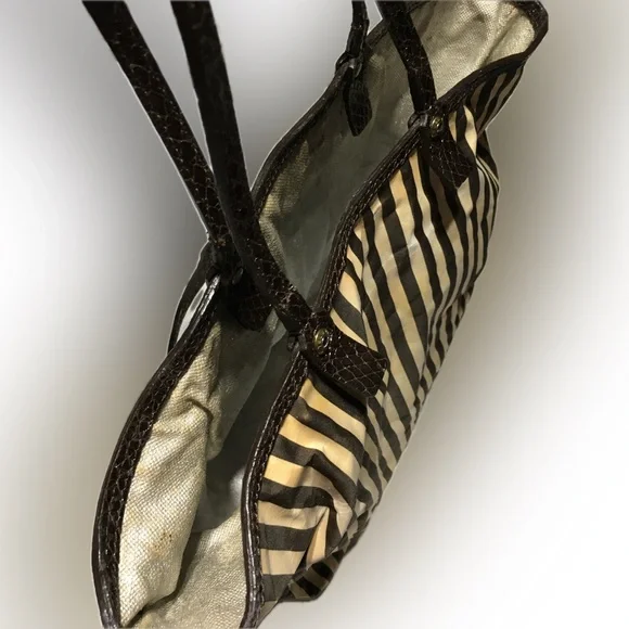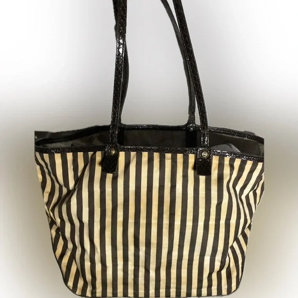 Henri Bendel Striped Tote Handbag Signature Dark Brown & White Stripe DISTRESSED