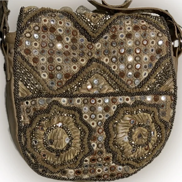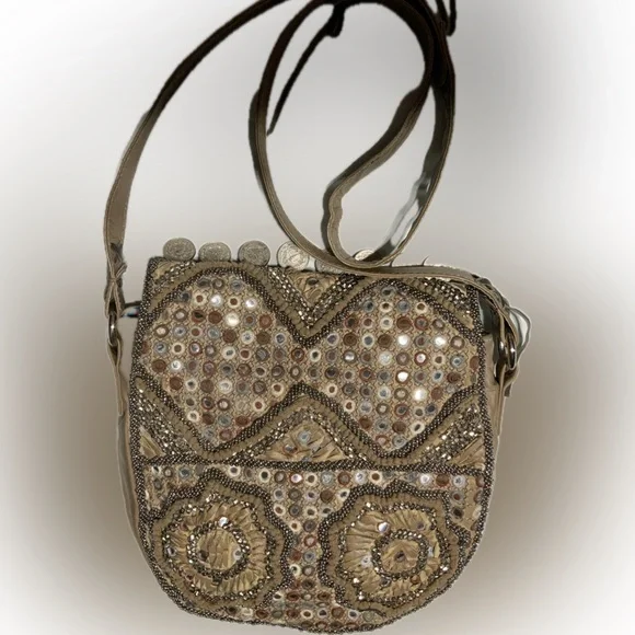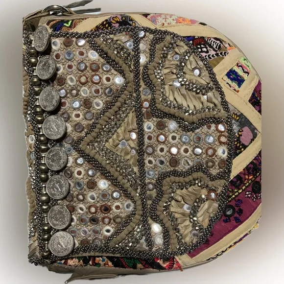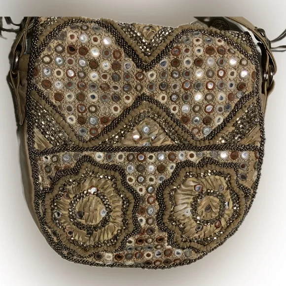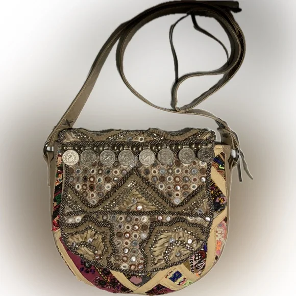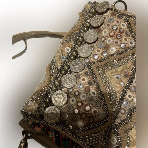 Free People Sienna Patchwork Leather Beaded with Coins Shoulder Handbag
