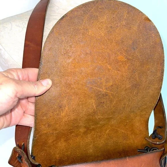 Handmade Tooled Leather Shoulder Bag Womens Vintage Bohemian Stamped FloralThis is a one of a kind vintage handmade leather bag featuring a flap front closure and a beautiful...