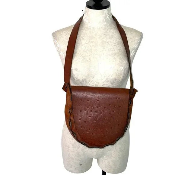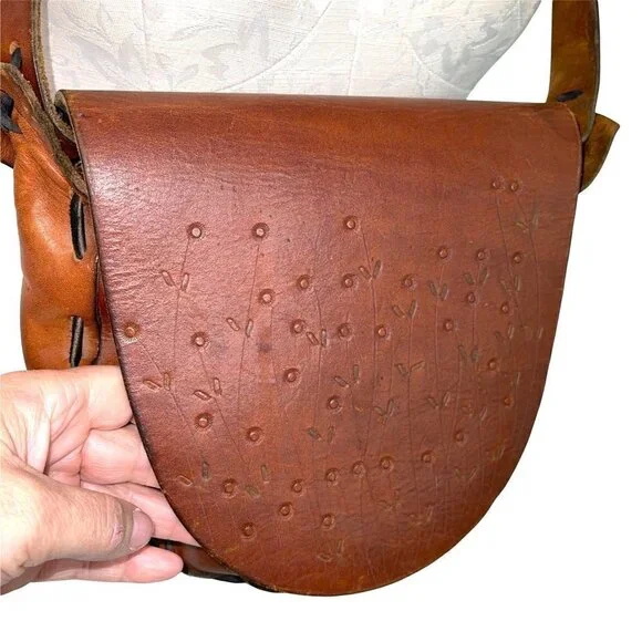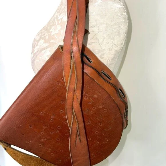 Handmade Tooled Leather Shoulder Bag Womens Vintage Bohemian Stamped Floral