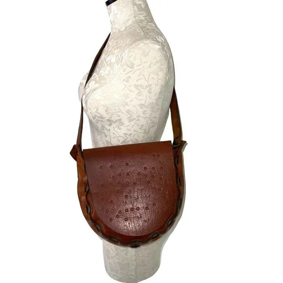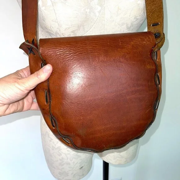 Handmade Tooled Leather Shoulder Bag Womens Vintage Bohemian Stamped FloralThis is a one of a kind vintage handmade leather bag featuring a flap front closure and a beautiful dainty floral pattern.Also has a very nice braided detail on the strap.Excellent vintage condition.Features:• Front flap closure• Stamped floral pattern• Braided design on top of strap• Vintage, Handmade• All season• Hand tooledSize: Womens See MeasurementsPlease see measurements to confirm fit:Width = 10 in / 25 cmHeight = 9.5 in / 24 cmDepth = 3.5 in / 9 cmHandle drop = 14 in / 36 cmCondition: Pre-Owned Excellent vintage condition.