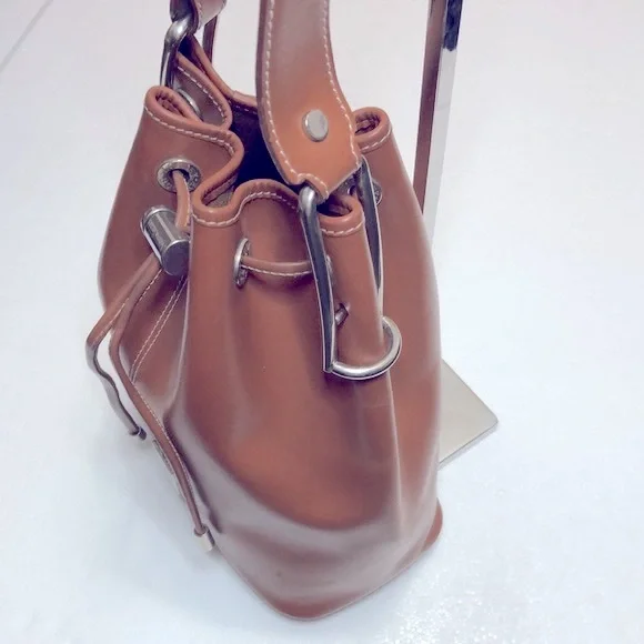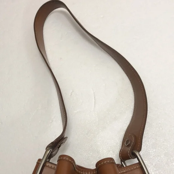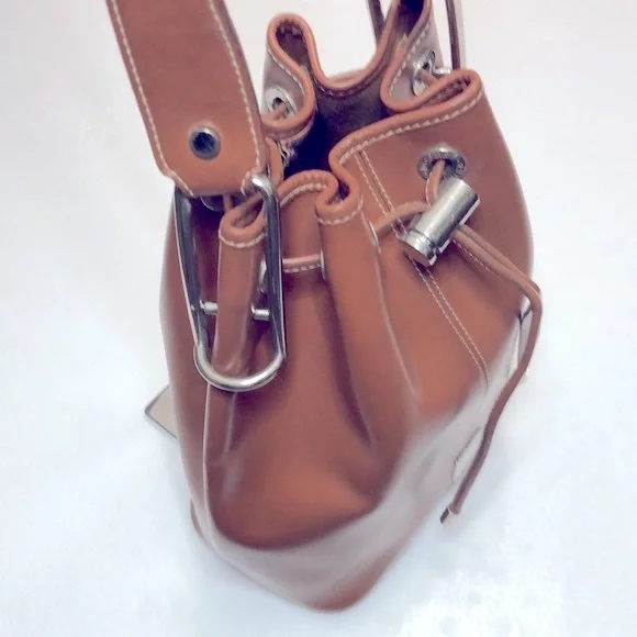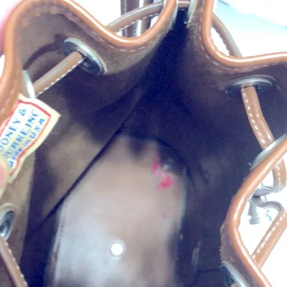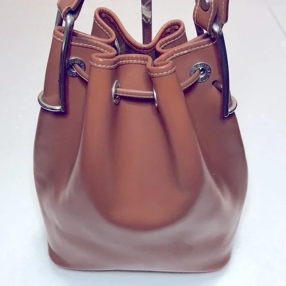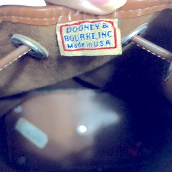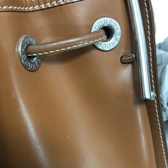 DOONEY & BOURKE LEATHER BUCKET DRAWSTRING Size : 8.5” W x 10.5” H x 4.5”DStrap : 26” Long , NOT adjustable Color Light brown / TanHardware is silver colorGently used , CLEAN, excellent condition
