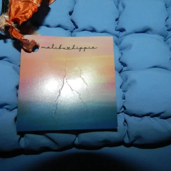 Brand new with tagsHard to FindMalibu Hippie Puffer Quilted BackpackLarge sizeLight blue color.approximately13" w x 6.5" d x 15.5" tallII-14