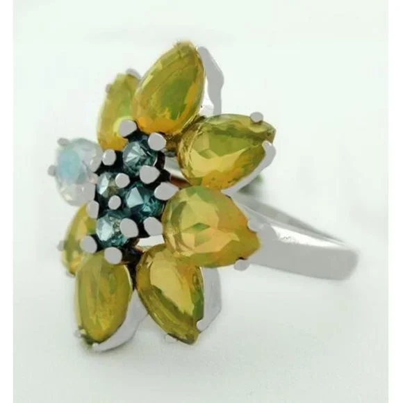 Genuine Opal & Blue Zircon Ring .925 Sterling Silver