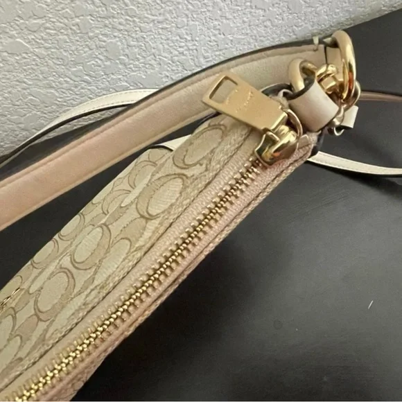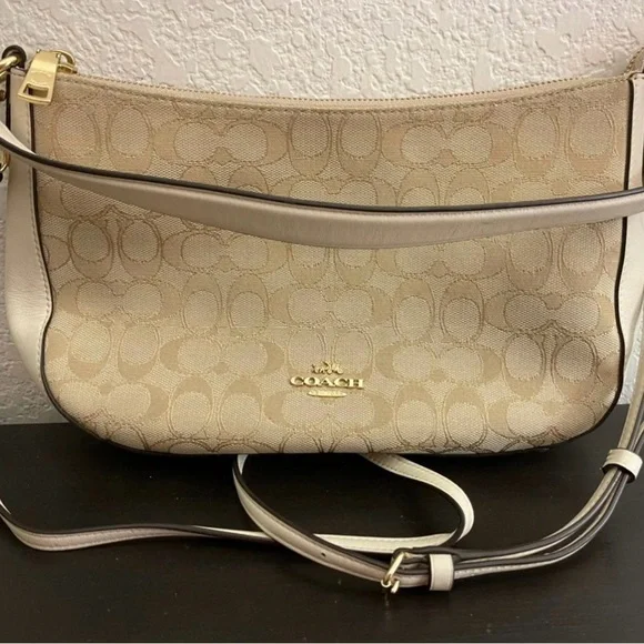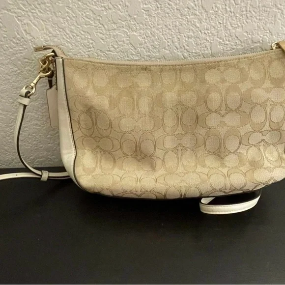 Coach Beige Signature Canvas and Leather Shoulder Crossbody Bag