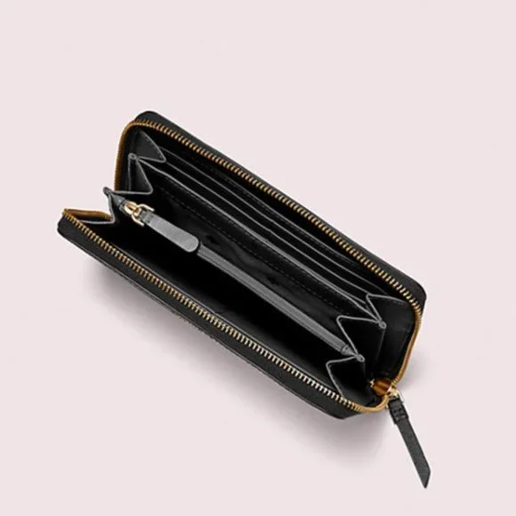 Kate Spade Cameron Large Continental WalletMaterial: LeatherColor: Warm Beige and BlackA classic grained leather crafted wallet that features zip-around closure and ample card...