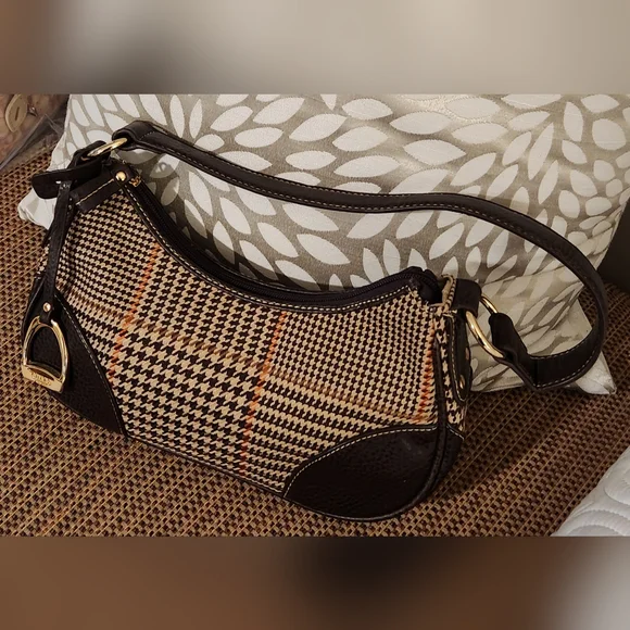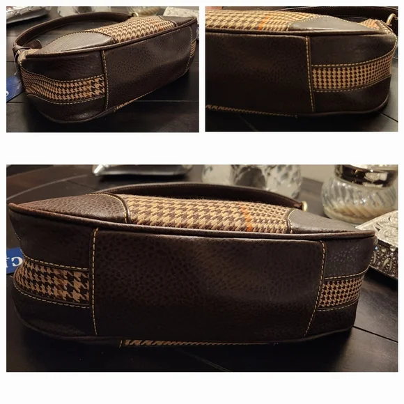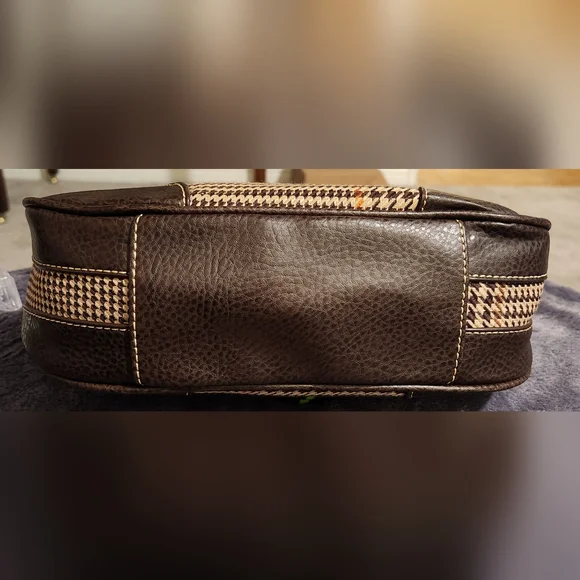 CHAPS Oak Street Houndstooth and Leather Hobo in Brown 50157 CPNWT