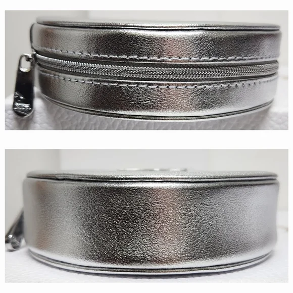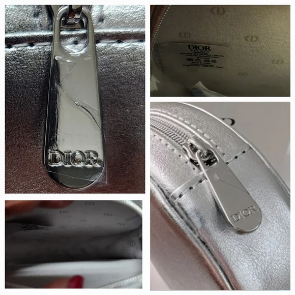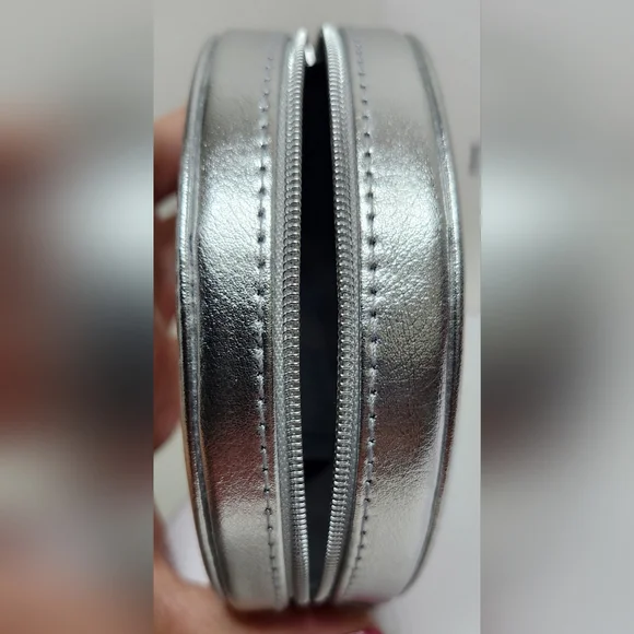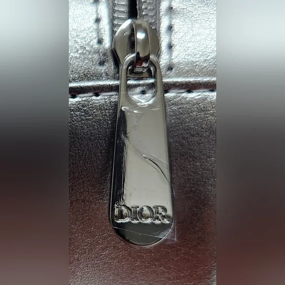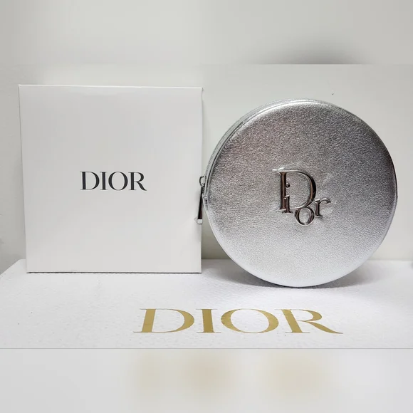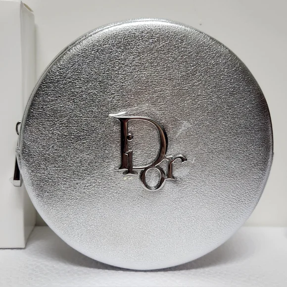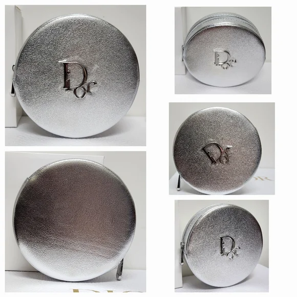 Dior Round Silver Zipper Pouch NIB