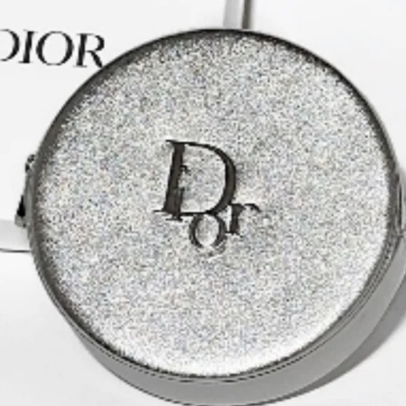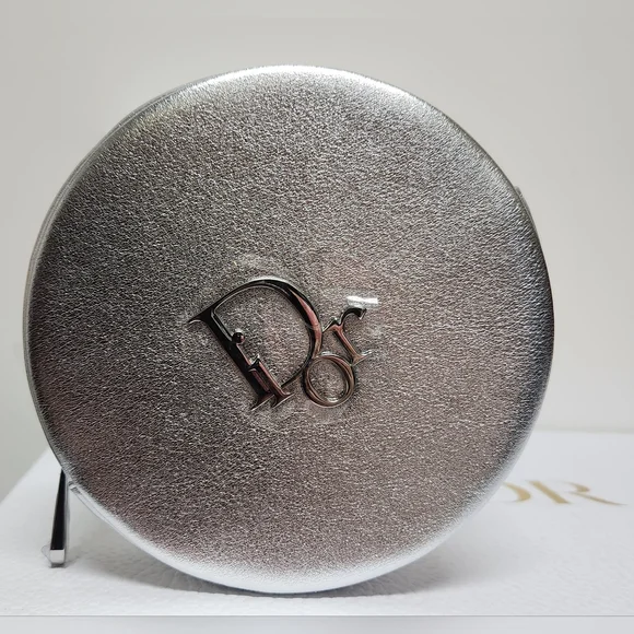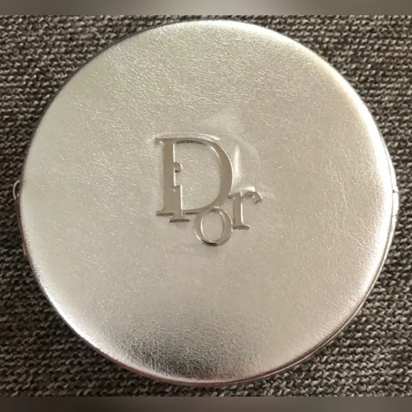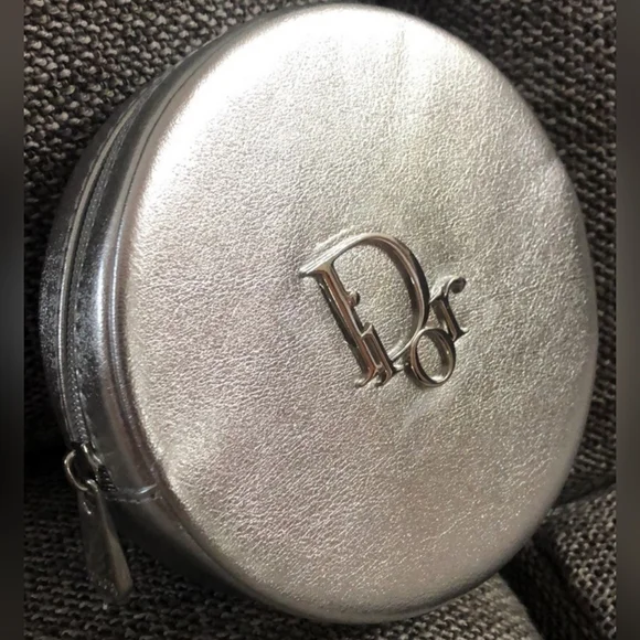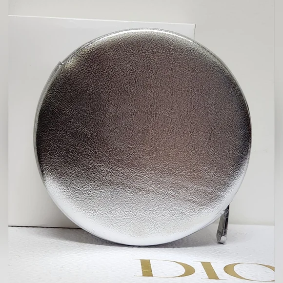 Stunning Dior round silver pouch. Sleek silver finish. Perfect for adding a touch of luxury.Use it as a clutch or add a chain and create a useful little bag that´s perfect for any event. Multipurpose little bag. Makeup bag. Jewelry pouch. Clutch. Coin Purse. Travel. Vacation.Vegan leather in silver Silver hardware Top zipper closure DIOR pinmount logo on frontLogo metal zipper pullCD signature interior liningAuthentication tag inside Comes in a DIOR box