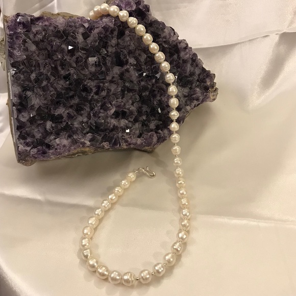 There is nothing more beautiful than Silvery White Baroque Pearls!Their rich luster makes this necklace a beautiful gift for yourself or someone special! Each pearl is separated...
