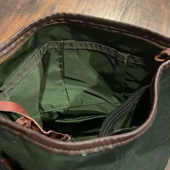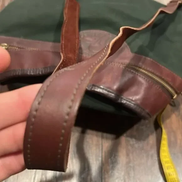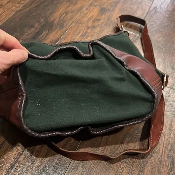 VTG made in USA Canvas Back shoulder bag green canvas brown leather trim EUC rare bag especially in this conditioncheck pictures