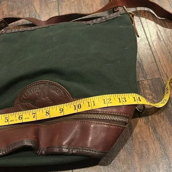 VTG made in USA Canvas Back shoulder bag green canvas brown leather trim EUC