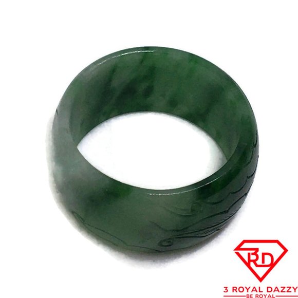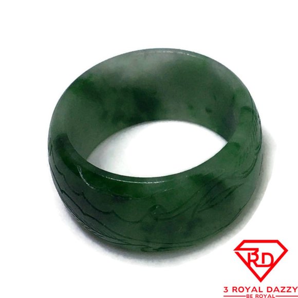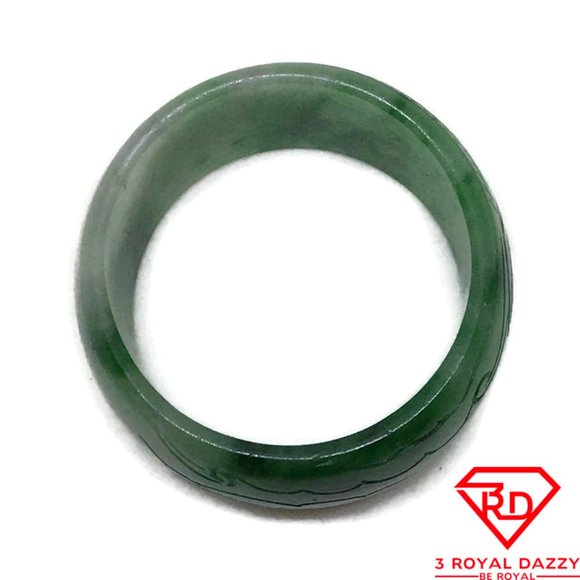 Smooth Inscriptions Round green jade ring Band (Size 9)Material:JadeRing Size: Size Available - 9 . 5(please message us for adjustment or different size)Stone set :...