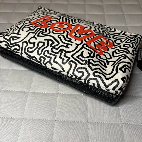 Coach x Keith Haring - Black and White Clutch with Red Love Accent