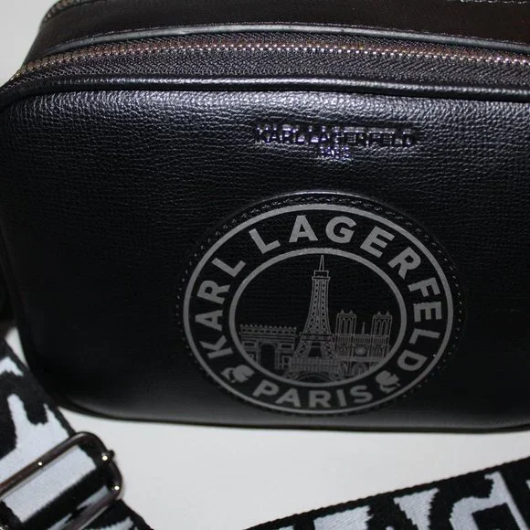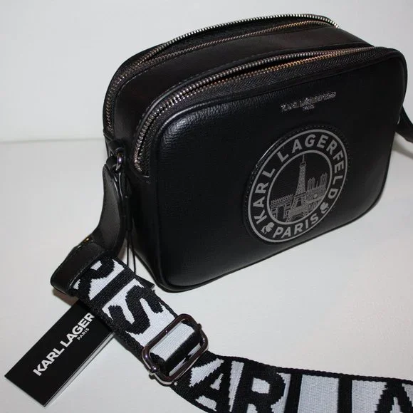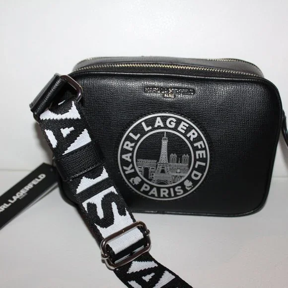 This listing is for a brand new with tags 100% authentic KARL LAGERFELD PARIS Maybelle Cross-body /Shoulder Bag / with airpod caseSilver Tone HardwareLogo in FrontRound large Karl lagerfeld logo in middle front of bag ( very rare bag to find)Adjustable Signature Shoulder StrapClosure: Double ZipColor: Black/ SilverMaterial : Faux Leather / TextileExterior: 1 Slip Pocket at BackInterior: 2 Zip Compartments , Black Signature Lining, 1 Slip Pocket , 3 Card PocketsMeasurements: Height : 6 inchesLength : 9 inchesDepth: 3 inchesAdjustable Signature Shoulder StrapGuaranteed to be brand new and 100% authentic