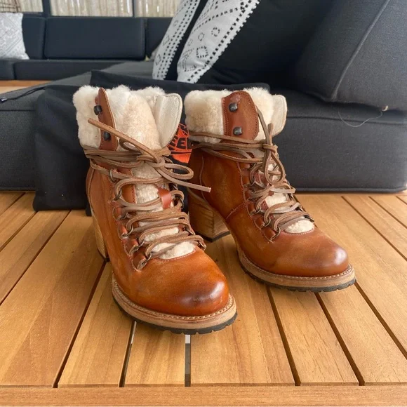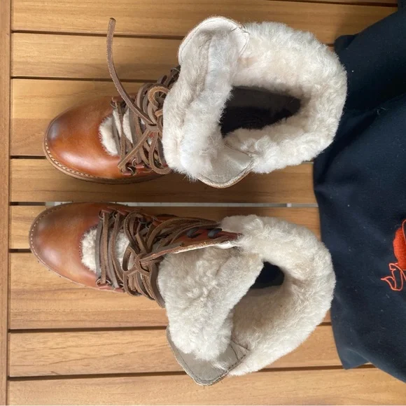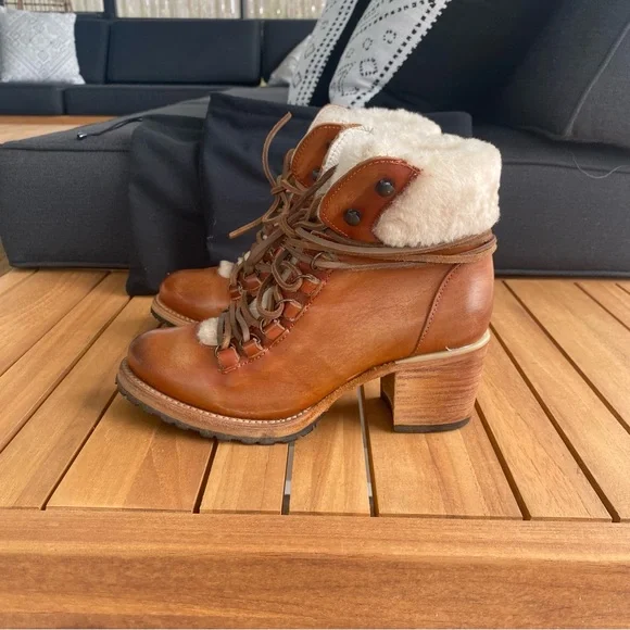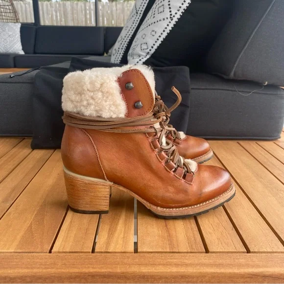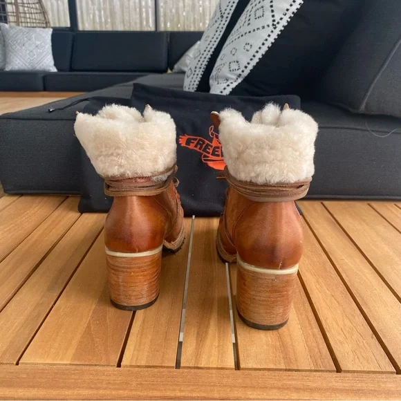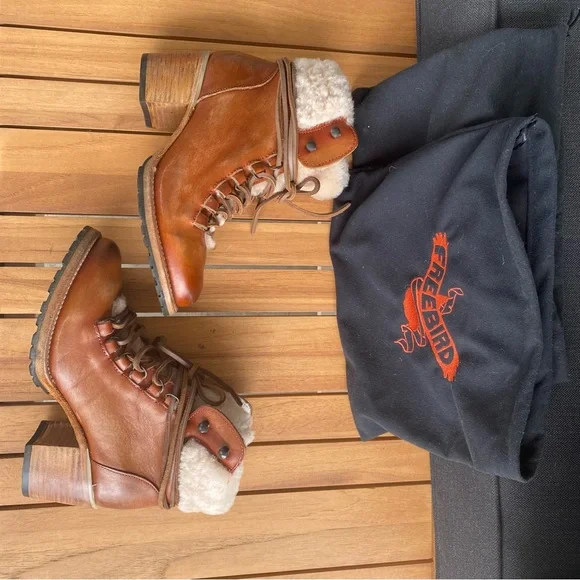 Freebird by Steven Women´s Norway Heeled Sherpa Lined Boots in CognacExcellent used condition - like new, only worn onceStep out in style with these chic brown leather ankle...