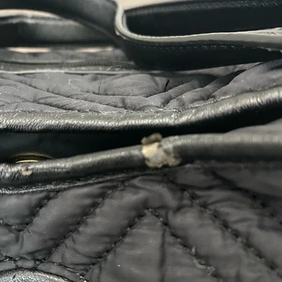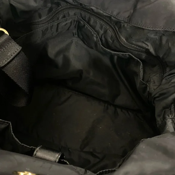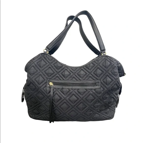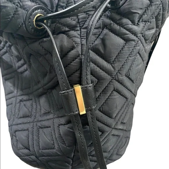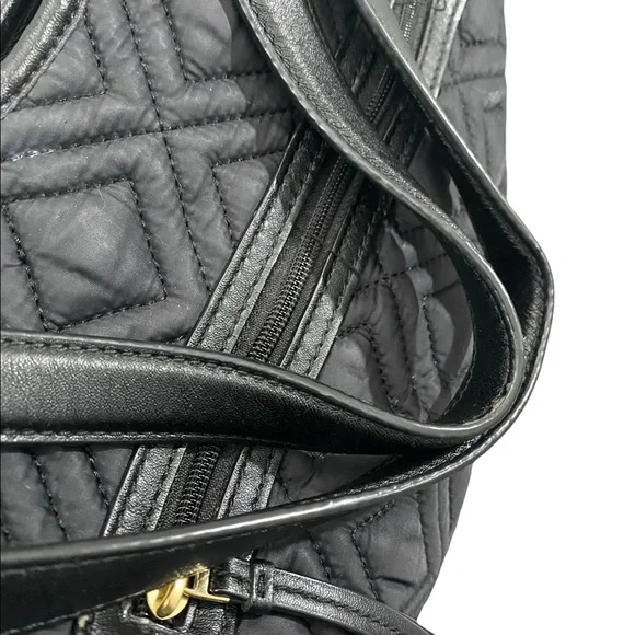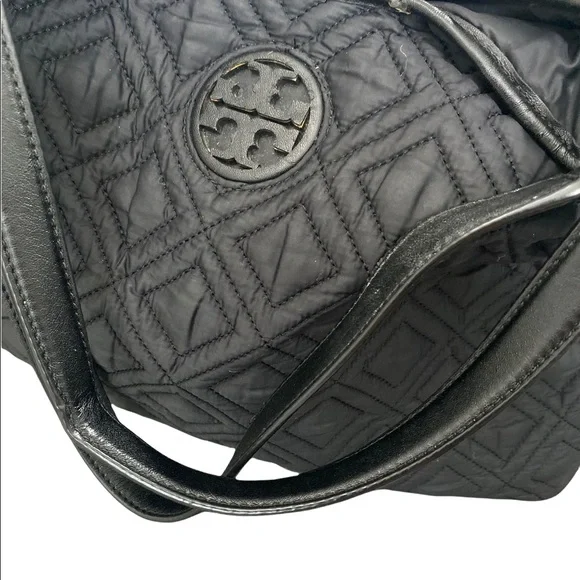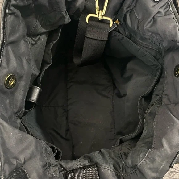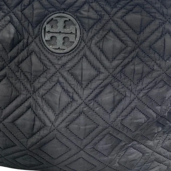 Tory Burch Marion Slouchy Quilted Nylon Diaper Bag. Some light wear on trim and may be a few tiny pulls on side fabric. No changing pad.