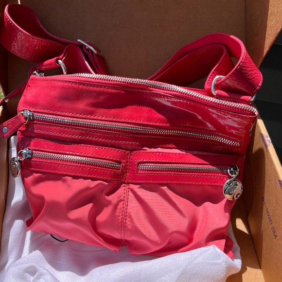 Brighton Shoulder Strap Purse - Flamingo Measurements - 11" w x 8.5" h x 1"deepLength - 12.5" - 25"The front has 3 zippered pockets. Full closure on top.Back has an open pocket...