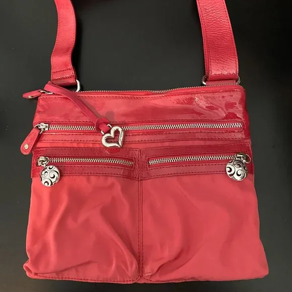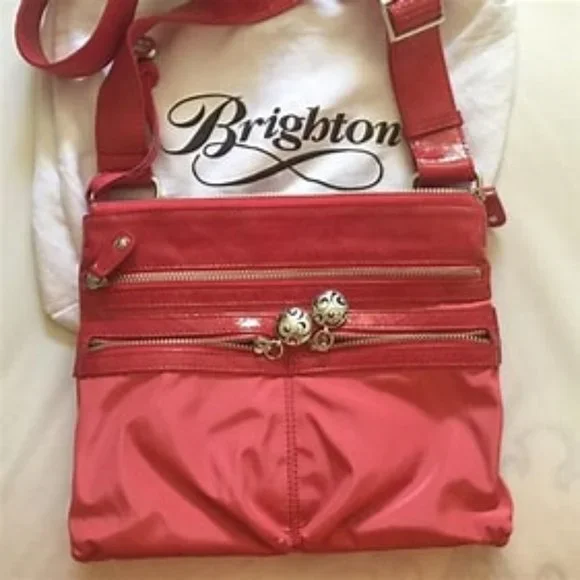 Brighton Shoulder Strap Purse - Flamingo Measurements - 11" w x 8.5" h x 1"deepLength - 12.5" - 25"The front has 3 zippered pockets. Full closure on top.Back has an open pocket with a magnetic closureInside has a zipper pocket on both sidesIt has a 12.5" - 25" " adjustable strap which allows tailoring to your ideal length.Can also be used as a crossbody hands free purseSmoke free and pet friendly home