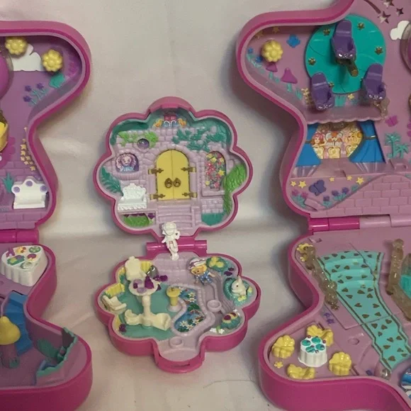 Two 1993 identical Polly Pockets and the smaller is 1990. All in good condition with a total of 7 mini doll figures. Please inquire for more details or photos.