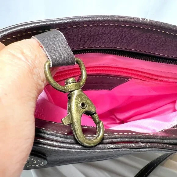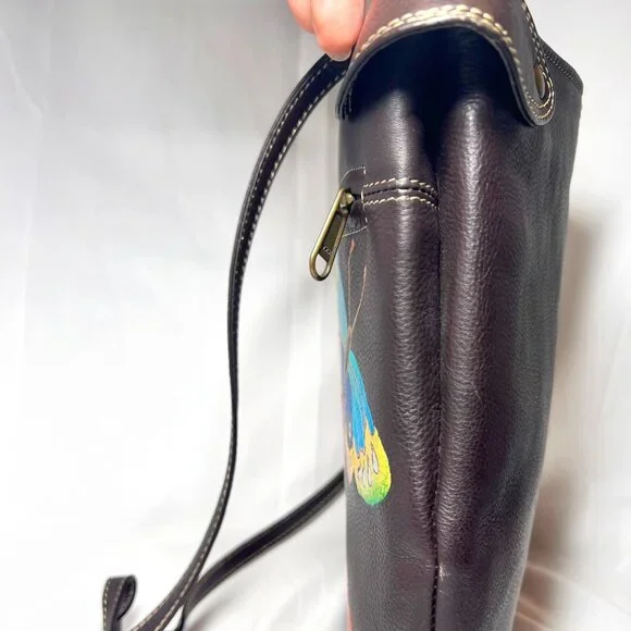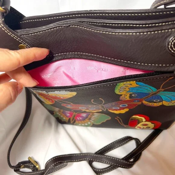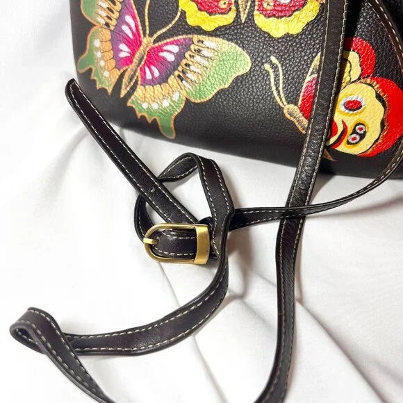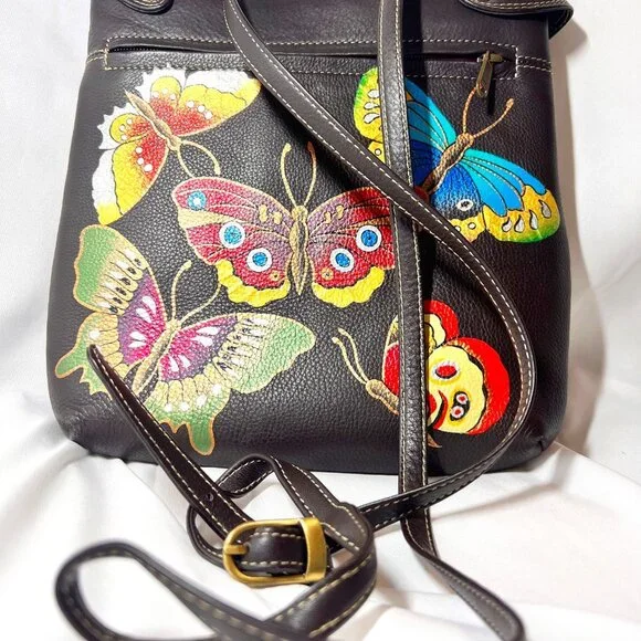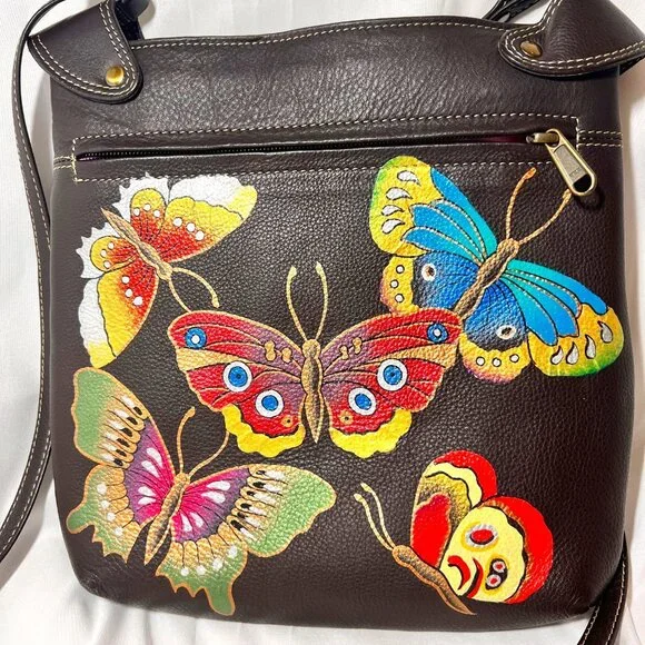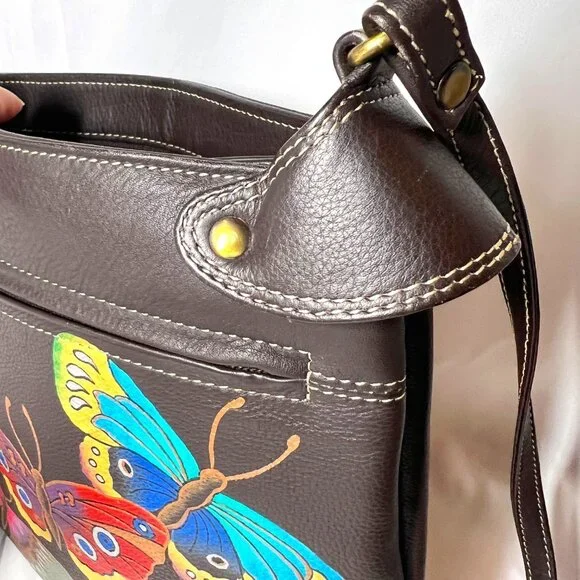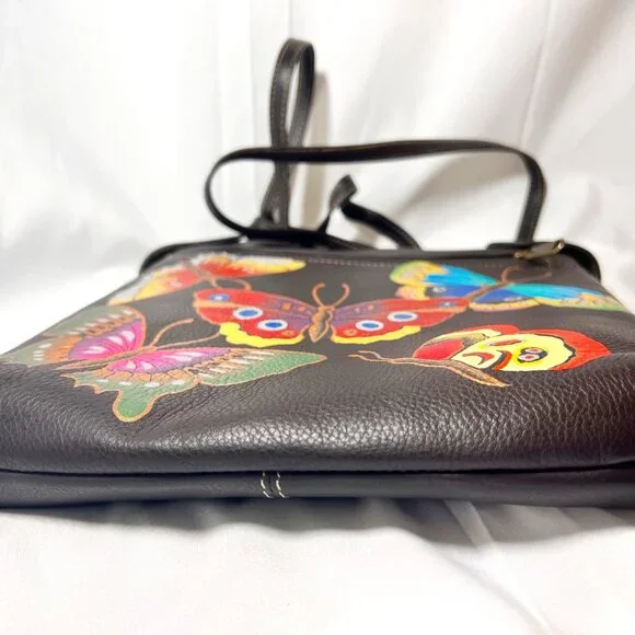 Anuschka Hand Painted Leather 3 Compartments Butterfly Crossbody Purse-NWOT-Zip