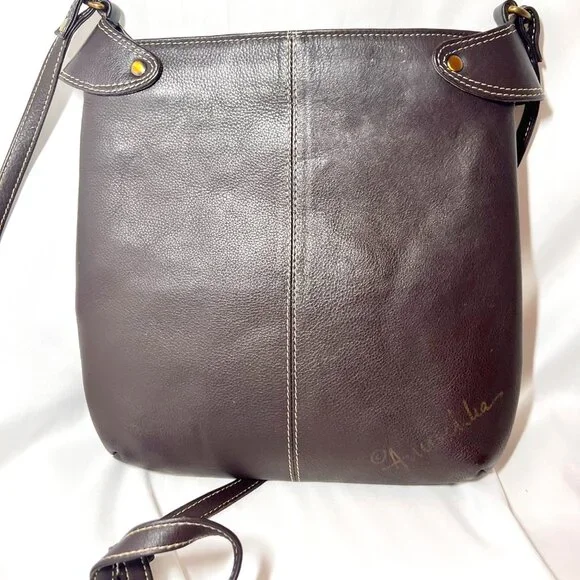 Size Wide 10" x Tall 10" x (add 27" Handle Drop) Depth 1´Total 37" with strap, which are adjustableColor Dark Brown Leather, Red, Green, Blue, Yellow, Purple, Orange, Black, Silver, Gold, Tan-Pink insideButterfly loversNWOTZipper outside for cell storage2 compartments inside Key Chain buckle holder (see photo)Gorgeous Hand paintedSigned on back bottom (see photo)TravelVacationHands Free purseSpring, summer fallAll yearWell madeUnique Beautiful Well made purse/Crossbody