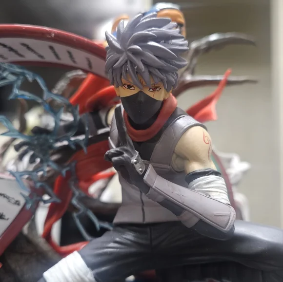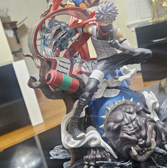 Dynamic anime ninja figurine. Features a masked character with a scroll. Intricate details and vibrant colors.39cmPVC toys model Statue Anime N Hatake Kakashi ActionI need...
