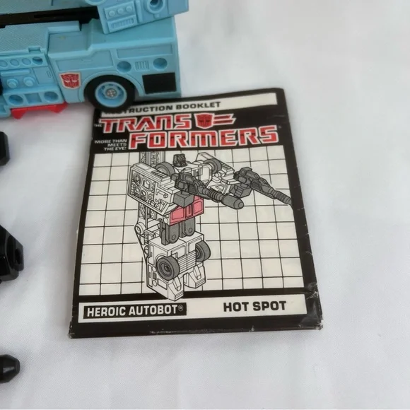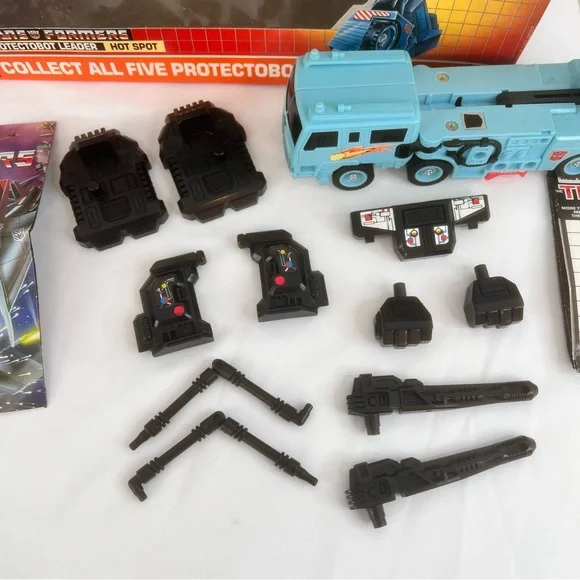 Thank you for considering, be sure to view my other listings as I will be posting tons of vintage toys over the next few weeks.Many more G1 Transformers, GI Joe, and more.Complete G1 Transformers Figure1986 Hot Spot Protectobot Leader w/ Box & Original Insert *Figure is complete and in good shape*Box is complete and in good shapeIf you want to ask a question, leave feedback, or suggest an idea... don´t hesitate to contact me.Please remember that this piece has led a previous life and may tell its story through minor imperfections. Please don´t expect it to be in pristine condition. You´re purchasing a rare and often unique piece when buying a second-hand or vintage item. Purchasing this item continues its narrative, so you can be confident that you´re making a positively conscious choice for the planet. If you want to ask a question, leave feedback, or suggest an idea... don´t hesitate to contact me.