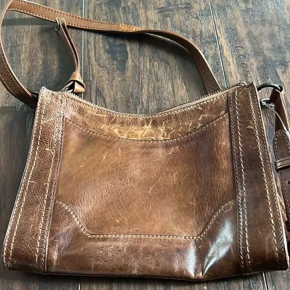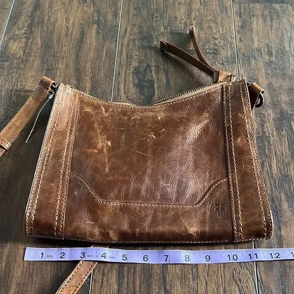 Frye Leather Melissa Zip Crossbody Cognac,Bag purse awesome distressed look
