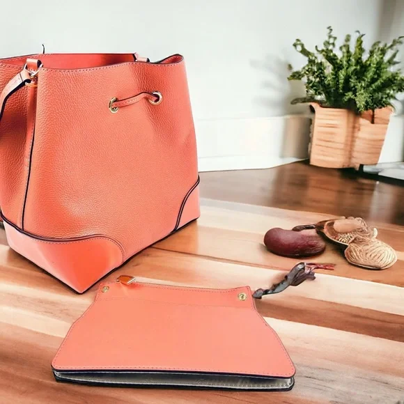 MICHAEL KORS Mercer Gallery Medium Shoulder Bucket Bag •Color: Coral Pink•Material: Pebble Leather•This bag is preowned in excellent condition• It has a detachable inner wallet•Bag Height 11”•Handle Drop 18.5"•Bag Depth 7”⭐️ PLEASE CHECK OUT MY OTHER MICHEAL KORS LISTINGS ⭐️