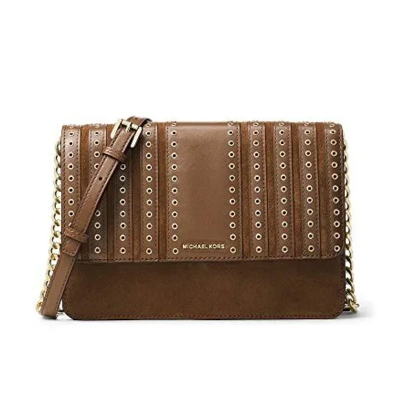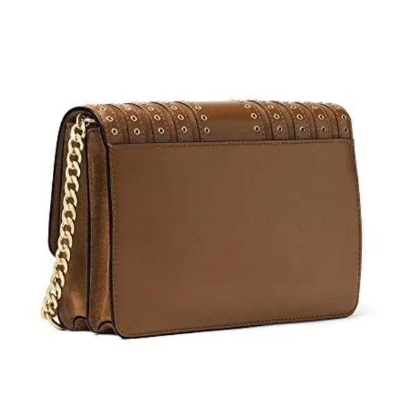 MICHAEL KORS BROOKLYN GROMMET CROSSBODY LEATHER BAG DARK CARAMEL